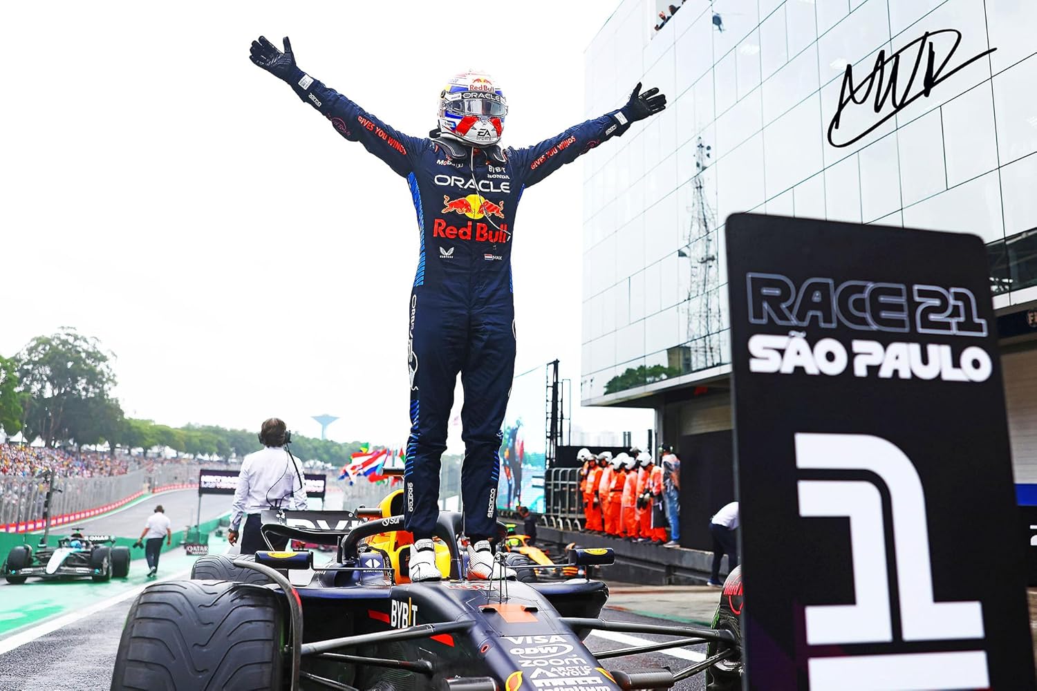 Art Print Poster of 2024 F1 Brazil GP Red Bull Racing with Pre-Printed Max Verstappen Autograph – Premium High Gloss Art Print Poster. (131P) (24”x36”)